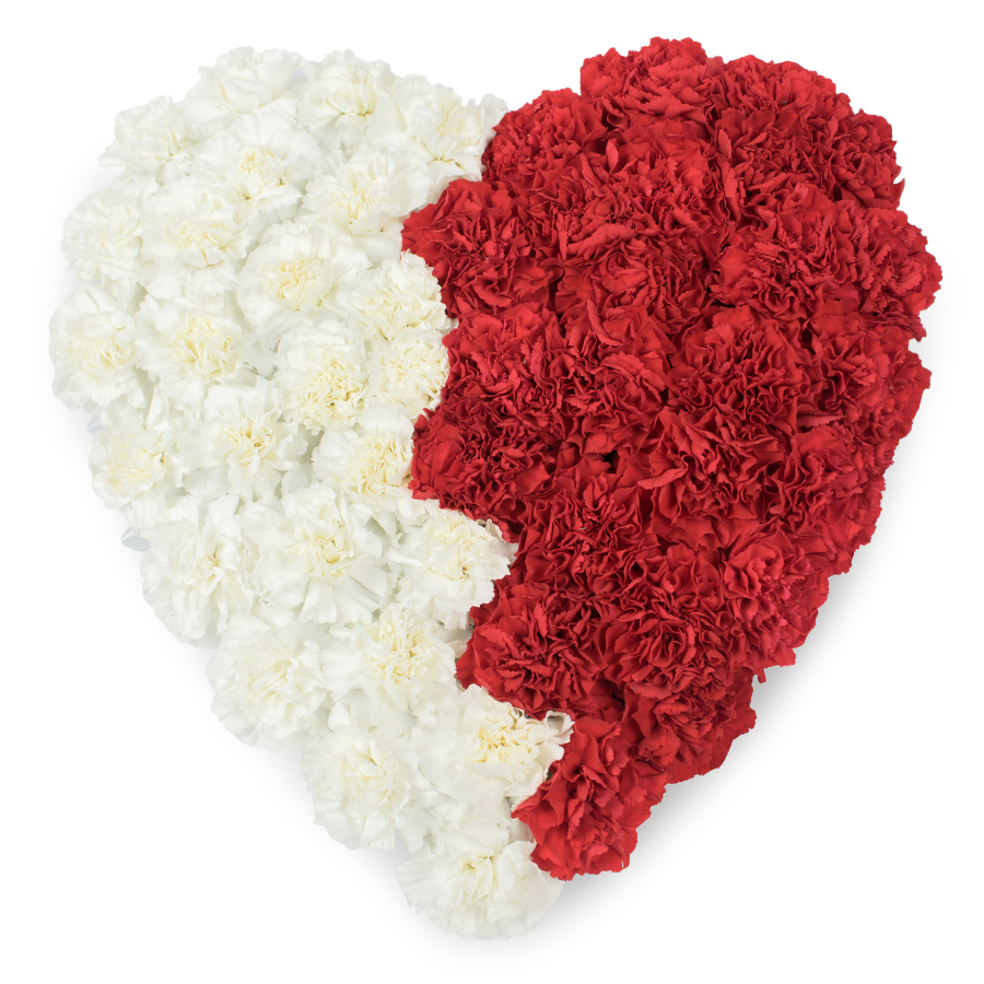 Handcrafted by expert florists in Morden, each Loving Heart tribute is created with care and attention to detail. The contrast of pure white carnations with rich red blooms symbolises devotion and enduring love. Available in Original, Deluxe and Grand sizes, you can choose the perfect scale to suit your needs and venue. The Deluxe size is pictured to help you visualise the finished design.